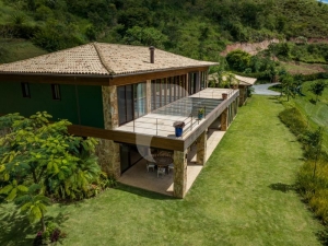 Excelente propriedade no melhor condomínio da Serra, em um terreno de 3.600 m² com construção de 1.118 m². A casa é dividida em dois pavimentos, sendo o primeiro composto por sala em vários ambientes, lareira, lavabo, adega para 1500 garrafas climatizada da Joshua (projeto do Miguel Pinto Guimarães), louçaria, suíte térrea, copa cozinha principal, despensa, área de serviço, estar de funcionários com dois banheiros e dependência; O segundo pavimento conta com hall com copa de apoio, 6 suítes, varandas estruturadas para receber hidro ou ofurô, com saída de água quente. O diferencial da suíte máster fica por conta do seu tamanho, TV com flip motorizado no teto e o salão de banho composto por duchas de teto e cuba dupla; No terceiro pavimento temos sótão com banheiro social, copa de apoio e varandas, ambiente favorável para a oitava suíte.
