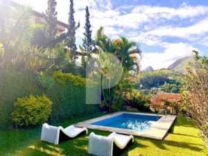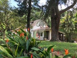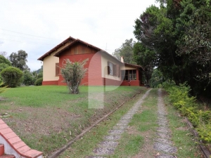 Terreno com área de 3.394,51 m² sendo 2.000 m² de área de mata atlântica. Área construída de 310 m². Casa principal: sala de estar/jantar e saleta escritório; banheiro social; 3 quartos sendo 2 suítes; cozinha; despensa; lavanderia; lazer; jardim de inverno; varanda; apartamento anexo com saleta, WC, 2 quartos e cozinha. Apartamento superior: sala ampla e cozinha, suíte, sótão; adega; garagem para 2 carros.